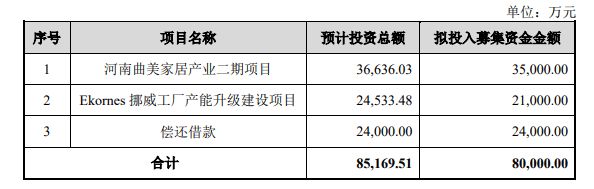 曲美家居集团股份有限公司日前提出2023 年度向特定对象发行股票预案,拟向特定对象发行股票募资不超过8亿元,扣除发行及相关费用后投入河南曲美家居产业二期项目、Ekornes挪威工厂产能升级建设项目、偿还借款。本次发行对象为不超过35名的特定投资者。