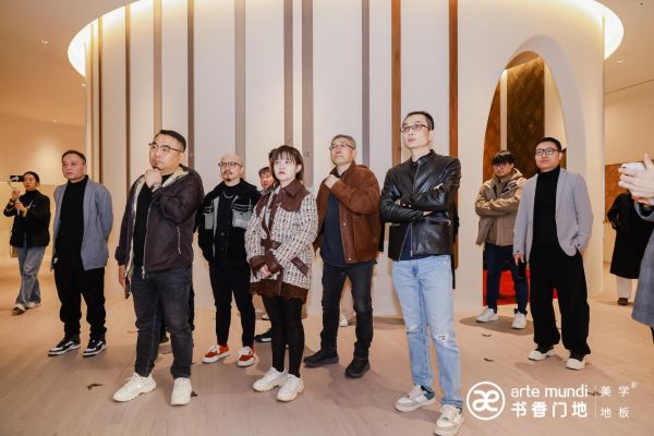 作为本次游学活动的亮点之一,设计师们走进流淌着动感与光影的书香门地美学生活馆。馆内一步一景,内置造型各异的不规则形态空间,上万款精妙绝伦的美学地板产品陈列其间。无论是纯手工打磨的细腻原木,还是点缀以施华洛世奇水晶的璀璨板材,无论是大气清爽的通用铺法,还是别具一格的异形拼花,无一不向设计师们展现了木质地板的极限工艺与无限美感。穿梭其中,设计师们时而用手触摸地板的细腻纹理,时而轻嗅天然木材的芬芳气息,沉浸在东方气韵与西式美学交融的独特魅力中,大家赞不绝口,纷纷拍摄打卡。