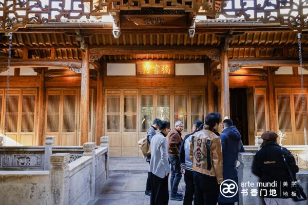 随后,设计师一行来到外滩故宫紫禁书院,品读故宫传统文化、感受古代文人书房、阅读故宫出版图书,在充满海派风情的外滩,设计师们深入了解紫禁城的历史风貌和艺术经典,感受故宫文化的不朽魅力。外滩故宫紫禁书院铺设书香门地幻次元系列、染净系列、玉石和铜艺材料融合类系列地板,古色古香的书院韵味与细腻雅致的美学地板相得益彰,巧妙融合,美轮美奂!