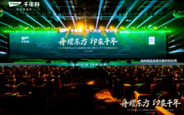 千年舟结合品牌理念提出了迎接亚运口号“一张好板迎亚运,装配未来健康家”,希望可以以亚运品质,冠军品质,持续为人民打造一张好板,为消费者打造满意绿色健康家。(张家麟)