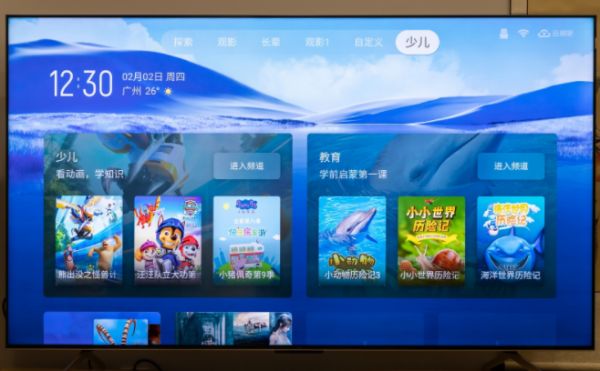 在电视顶端的模式框中我们可以自由设置分身桌面,比如长辈桌面、少儿桌面等等,自己还可以加入教育桌面、电竞桌面、直播桌面、动漫桌面等等,只要根据自己的喜好设置就行,再在各个桌面中放入对于的节目,比如长辈们爱看的戏曲栏目、抗战神剧等节目都可以通过卡片形式加入,进一步省去了查找的步骤,想看什么资源一触即达。