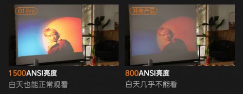 一块定制的显像屏,将微果D1 Pro的整机亮度提升到了前所未有的1500 ANSI 流明,在此之前,LCD投影产品的亮度很难达到1000 ANSI 流明。而亮度的提升对于用户观影体验的增强,是显而易见的,白天不用关窗,晚上看得更清。