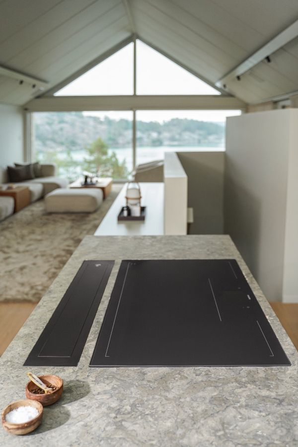 全区电磁灶与升降烟机平嵌入岛台, “我非常喜欢全区电磁灶前面的升降烟机。”Theresa说道,“获得干净的空间真好,你整理厨房时,只需轻轻按一下,升降烟机就消失了。这是一种非常好的感觉。” 嘉格纳升降烟机独特的升降设计并不影响其吸烟吸热的能力,它能确保厨房的气味和热量不会弥漫到开放式的生活区域。Theresa经常选取菜园里种植的鲜嫩蔬菜和瓜果,以及一家人在海边捕获的野味和海鱼,在厨房中大展厨艺,这是她和家人相处沟通最惬意美好的时光。