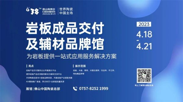 岩板成品交付及辅材品牌馆是岩板、一体化、成品交付在陶瓷行业的专属推广平台,由佛山陶博会组委会和TCT协会联合倾力打造,展会期间同步发布2023岩板成品交付、一体化新技术、新产品、新工艺等流行趋势。