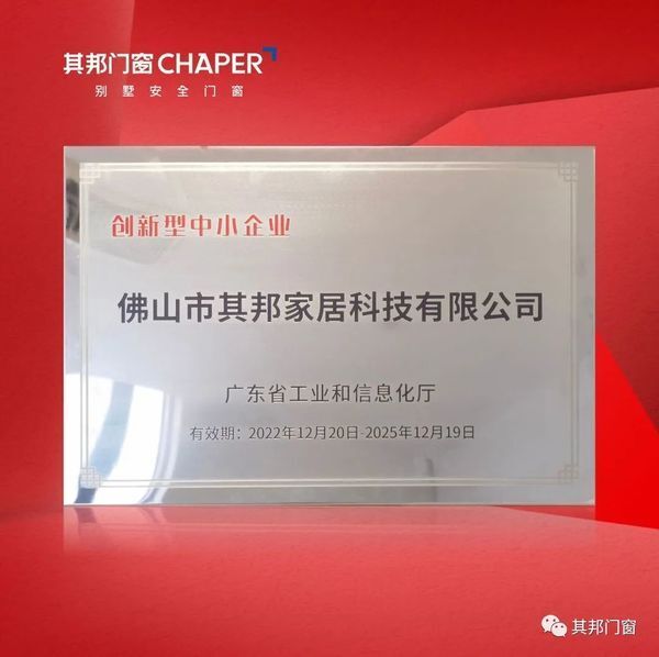 此次成功获评省创新型中小企业,是省政府单位对其邦门窗综合实力和创新研发能力的高度认可,是其邦门窗多年来不断进行研发投入和探索创新所取得的成果,也证明了其邦门窗在技术研发、产品创新、服务水平等各方面都具备了行业头部优势。