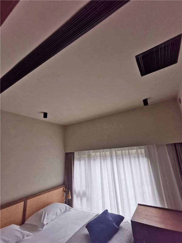 风机盘管,其实就是我们常说的水机中央空调,通常隐藏在室内的吊顶中,不会占用室内的地面和墙面空间。在出风效果上,与普通的氟机中央空调相比,风机盘管出风温度仅在32℃左右(普通中央空调出风温度在40℃-50℃之间),更加温和,不会有普通空调或者电暖风机那样强烈的干燥和不适感。风机盘管的供水温度在40℃-50℃之间,换热效率非常高,采暖区域在短时间之内就能达到采暖的效果。同时,风机盘管的控制很灵活,可以单独控制每个房间的温度及启停,还可以在不同工况下实现采暖与制冷双重功能。