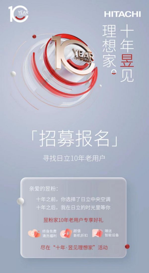 经由二十年的本土发展,凭借一流的产品与服务,日立以核心科技引领与精工精匠理念赢得了396万用户的广泛青睐。对老用户的持续关怀与回馈,使得日立中央空调于2023年正式启动“十年·昱见理想家”版块活动,为广大用户打开与品牌直接对话的窗口。