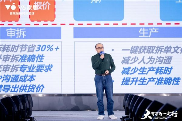 慕思股份IT信息流程中心总监余启龙在发布会上向全国经销商发布了“V6全屋定制系统2.0”,其中,三维家数字化工具作为贯穿全链路的重要组成部分,将深度赋能V6家居的门店设计、工厂审拆单、排程排产、开料优化、包装入库等场景。