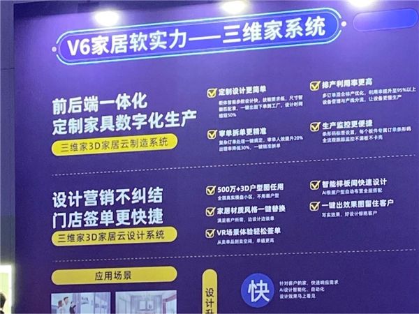 此次与慕思股份V6家居共同发布的“前后端一体化系统”,是双方投入上百人团队、共同协作的成果。据蔡志森介绍,此次系统上线,三维家将通过全链路数字化解决方案,帮助V6家居实现数字化营销、整家设计、场景式谈单、一键审拆单、AI排料优化、精准安装,让门店与工厂数据互通,真正实现“设计即交付 所见即所得”,提升产品服务口碑。