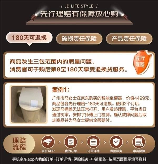 目前京东居家的“先行理赔”服务已覆盖家具、家装建材、厨具、日用、家纺等品类的近3万商家、2000万款商品,包括奥普、松下、TOTO、好太太、全友家居、苏泊尔等知名品牌均支持这一服务,为消费者提供先行理赔-180天可退换保障。商品发生三包范围内的质量问题,消费者可于订单完成第8日起享受退货或换新服务,除了远超业界平均标准的超长退换期限,京东还将携手商家为用户提供免费的上门拆除及安装服务,免除消费者后顾之忧。