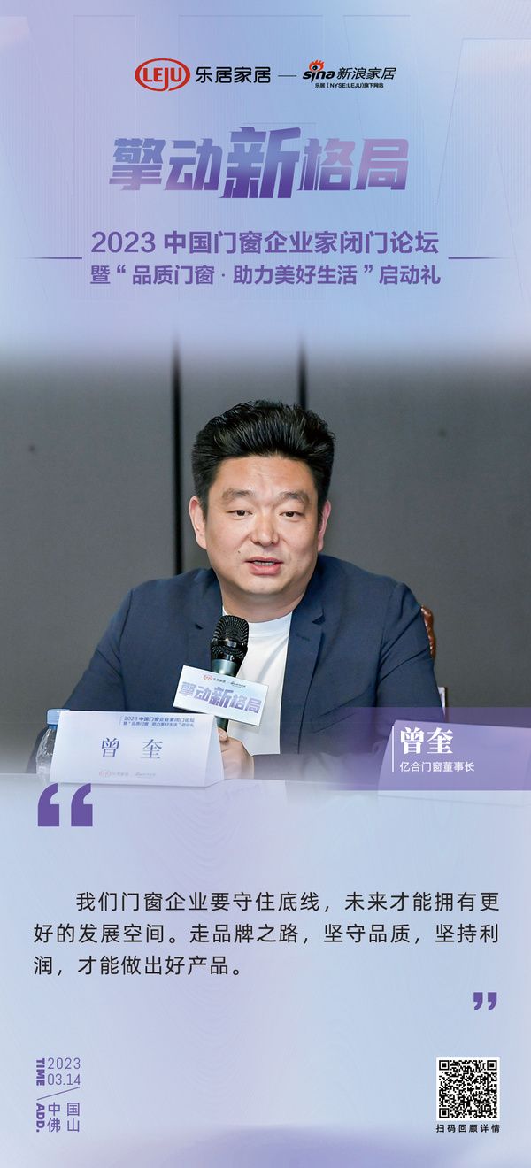 亿合门窗董事长曾奎:我们门窗企业要守住底线,未来才能拥有更好的发展空间。走品牌之路,坚守品质,坚持利润,才能做出好产品。