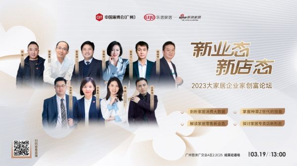 2023年3月19日,中国家博会(广州)经英论道场《新业态·新店态——2023大家居企业家创富论坛》,期待你的光临。