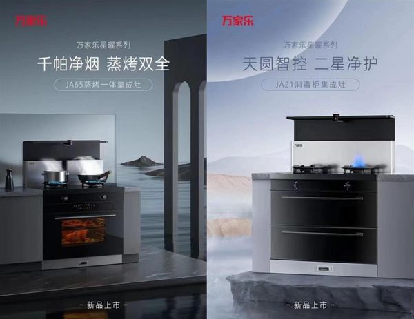 上面我们提到,万家乐具有制造基因、产品研发的强大背景支撑和基础。背靠技术平台优势和专业研发团队,如今万家乐已经实现了集成灶产品的自主研发,近期推出了新品JA65蒸烤一体集成灶与JA21消毒柜集成灶。