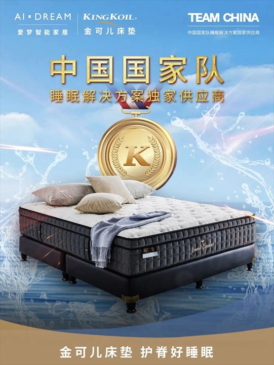 2022年,KINGKOIL金可儿所属愛梦集团获得国家体育总局体育器材装备中心授权许可,正式成为TEAM CHINA中国国家队睡眠解决方案独家供应商,为70余支单项国家队队伍和运动员提供智能睡眠寝具、深度睡眠解决方案。