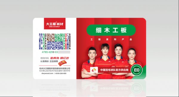 为了维护大王椰全国各地经销商的正品销售权益,同时保障广大消费者买到正规合格的大王椰产品。品牌始终坚持防伪系统设计,采用“一标二照”的防伪措施来帮助大家进行生态免漆板等产品的正品识别。