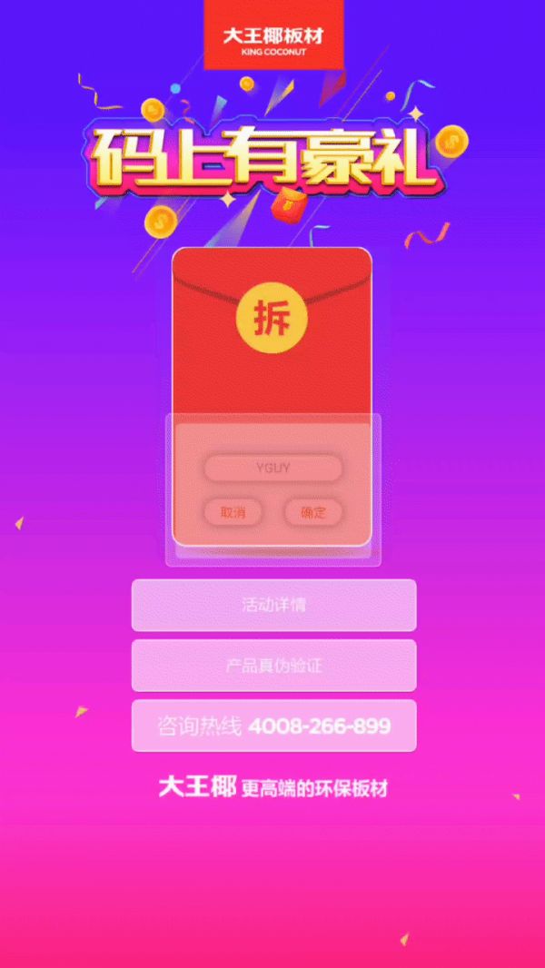 伴随第五代国羽防伪标识不断覆盖推广,扫描防伪标识上的红包码依旧能够领取专属红包福利。大王椰积极鼓励广大消费者维护正品权益,加大正品保障力度。