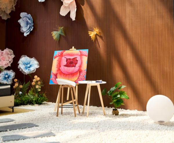 这一区域也同步展示了Simmons®席梦思与当代独立艺术家杨婉合作推出的“梦唤新生”艺术跨界合作作品,演绎“以好眠唤醒感官、唤醒精彩生活”的乐活主张。整体的画作采用粉、橘、红为主色调,通过积极明亮、层次丰富的春日色彩,融合“梦境”和“新生”的概念,为观众带来一场充满生命力的感官盛宴。