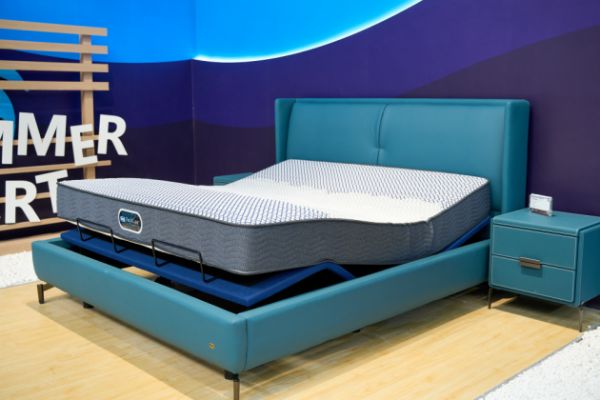 同时,Simmons®席梦思在本次展会重磅推出全新的EASY-S智能睡眠系列产品。这个系列的产品不仅融合了Simmons®席梦思的各项睡眠“黑科技”,也是品牌基于对人体工学进行专注和深入研究后打造的重点系列,可满足了广大年轻消费者日趋向新的科技睡眠需求。EASY-S智能睡眠系列产品的灵感来源于航天零重力太空舱座椅的科技原理,提供130°减重力太空躺的极致放松感。整个床垫系统可以全方位支撑心脏、脊椎和神经系统,不仅可以让入睡变得轻松,还能有效保持高效睡眠。EASY-S智能睡眠系列产品不仅可以实现大众最常用的太空躺、阅读、止鼾、深睡等智能睡眠模式,还有更多细分模式,可以解决生活中实实在在的睡眠难题,比如帮助孕妇和老人起身的助起模式,给运动员、久站久坐族等放松腿部肌肉的放松模式等等。同时,该系列还自带起夜灯设计,整个系统更具人性化和安全感。