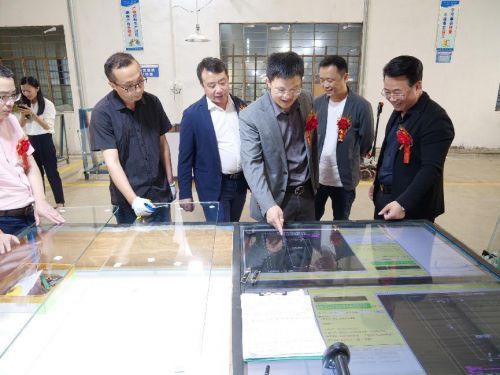 签约仪式结束后,希箭卫浴董事长谢忠与现场来宾等人在精度卫浴董事长陈克武的带领下,参观工厂车间与淋浴房展厅,全方位感受了这条专业的生产链与完善的供应链。