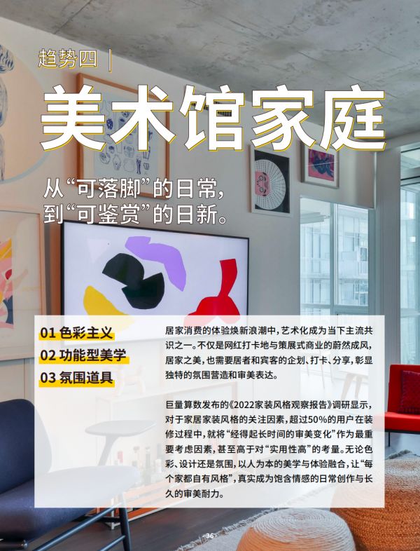 过去的三年,经历长时间的居家时光后,人们对家的价值和需求有了重新的审视,舒适度、情绪复原、细节关爱、表达自我审美变得更加重要,家装理念也从“有居”向“优居”进阶。近日,京东居家联合场景实验室发布《日常与日新:2023居家消费新趋势》,指出时下家居家装消费正向即兴生活、美术馆家庭、开发新角落、疗愈倦怠、智能友好五大趋势发展,并为消费者提供生活方式指南及决策参考。