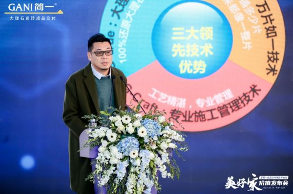 在此次发布会上,简一的合作伙伴,东易日盛董事长陈辉就说到:“简一不断推出创新价值的产品,有创造力的产品为高端客户提供了很好的选择。过去大家都用大理石,但是大理石大本身极其难以打理维护,而简一的大理石瓷砖很好解决了这个痛点。既有大理石的纹理设计呈现和用户体验,同时又兼具瓷砖的高密度、易打理性以及坚韧耐磨的特性,像我的办公室就用简一的大理石瓷砖。”