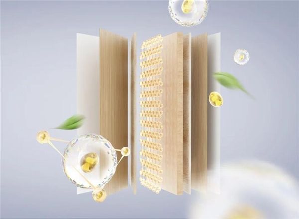 莫干山板材严格控制胶粘剂的无甲醛添加。黏胶剂,作为板材生产中的主要参与者,也是影响板材环保品质的重要因素。为此,莫干山家居研究院携手中科院、林科院等权威科研机构,协同攻克不含醛的黏胶剂的研发。历时多年自主研发,终于推出了以水为分散介质的大豆蛋白胶,运用特殊的水解方法,破坏大豆蛋白中的氢键,使其活性官能团充分暴露,通过调节pH值等控制官能团的数量,实现了对豆粕进行活化改性,再配合高分子交联技术,既保证无甲醛添加和胶水黏度,同时解决了传统豆胶耐水性和防霉性差、工艺适应性不强的问题。该技术充分利用了大豆榨油后的豆粕,实现了资源的二次利用,减少资源浪费,解决甲醛、苯酚等有毒、有害物质释放,采用天然无添加甲醛的生物质基胶粘剂运用于生产,更保证了板材抗压耐磨、自然清新、不易老化变形。