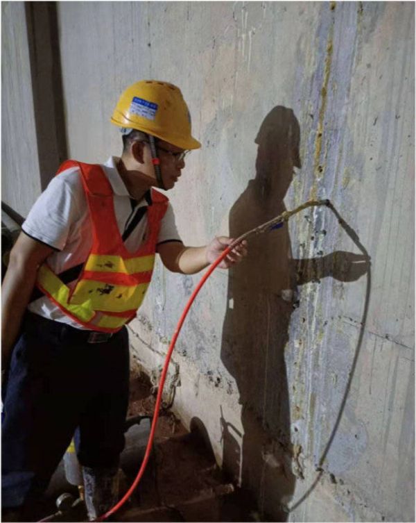 (4)注浆结束后,将注浆管割除,采用“甄名防水补漏指定堵漏维修宝”封堵注浆孔,然后在渗漏范围结构表面涂刷渗透防水涂料,作为表面抗渗防潮层。