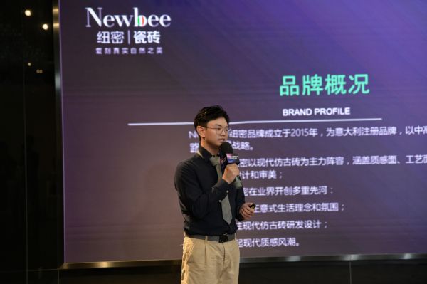 今年,Newbee丨纽密瓷砖推出全新品牌视觉设计形象标识,向国际化、品质化战略推进了重要一步。在签约仪式上,到场的嘉宾领导们一同欣赏了Newbee丨纽密瓷砖全新展厅宣传片,随后,市场部经理王健先生从品牌理念、品牌愿景、品牌革新、赋能中心等四大版块向现场嘉宾介绍了品牌概况及战略布局。王经理表示,现在的行业背景下,推动企业品牌化发展,是难而正确的事情,纽密有信心亦有决心。