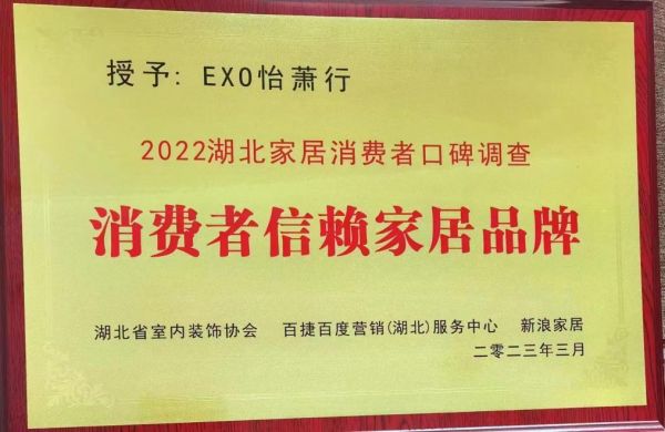 喜报|EXO怡萧行荣获湖北消费者信赖家居品牌