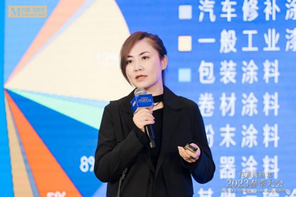 随着整装和整家定制的崛起,节能环保的全屋涂装也成为大势所趋。在此背景下,高端涂料进入发展窗口期,成为一匹行业黑马。“在欧美的国家高端涂料的普及率达到40%,但在国内目前仅有5%,成长空间非常大。在红星美凯龙,涂料板块经营面积共有32万平米,从2020年至今每年以10%-15%的速度增长。”红星美凯龙软装事业部总经理万莉芸分享道,现在更多的涂料开始往智能科技、绿色低碳的方向做产品延展,“对于这样的高端涂料,未来的功能价值将会重新定义。我们会通过设计类的服务,赋能高端涂料板块”。