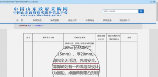 2020年开始,全国各地中小学在校桌椅招标文件标准中明确指出,校桌设计要“靠胸前处有一内弧造型设计”。弧边桌逐渐成为新标准。