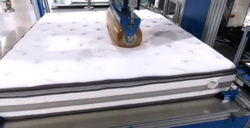 而对于床垫来说,用久之后塌陷是最让消费者头疼的。针对这款产品,吴彬说:“我们通过铺面测试模拟人躺在上面的力,一共滚了5万次,比行业标准增加2万次;模拟人在床垫边上坐下的力进行边部测试6000次,相对行业标准加严了20%。两项测试后,床垫均无断裂、破损,形变不超过10%,耐久度测试还是符合要求的。”