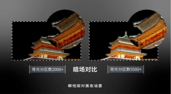 背光分区的意义在于能够实现背光面板中每一个分区独立的亮度控制,从而更好地掌握电视画面中的明暗效果,带来更加优异的视觉体验。从过往技术来看,当电视的背光分区达到数百级时,画质能够达到了行业轻旗舰的水平;当背光分区达到两千级时,就能够超越OLED电视;当背光分区的数量达到5000级以上时,就可以让我们同一幅画面里看到从未发现过的细节。