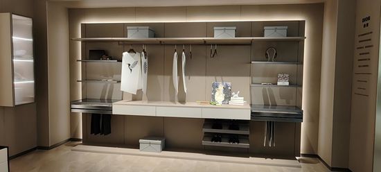 无形而有意,不去定义思想,希望人跟品牌之间在感性关联,可以持续输出更多有价值的内容,寻找设计的无限可能。空间设计拆解后再重构,追求人与空间的自由尺度。运用轻高定产品加强区隔产品定位,通过衣帽间系统的高级感,针对性地对已经成型的衣帽间模块反复打磨、提升和优化,迎合当下的年轻消费群体,把产品尺度做小一点点,这个就是我们现在感知到的轻高定的基本产品形态。通过社交空间的营造,打造年轻时尚的消费群体所喜爱的未来生活空间 ; 通过合理的产品配比和真实的空间装饰,还原本次展会的“圣象无形”的价值宣导,感知不到,却又无处不在。