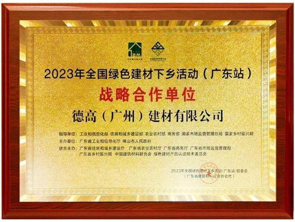 凭借在绿色发展领域的突出表现及超强实力,西卡德高在启动会上被授予“2023年全国绿色建材下乡活动(广东站)战略合作单位”称号。