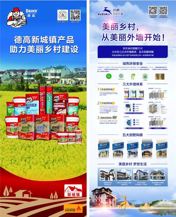 近年,乡村县镇居民的生活水平在不断提升,其对美好生活的期待值及人居环境的要求也顺应提高。作为“2023年全国绿色建材下乡活动(广东站)战略合作单位”,西卡德高将积极参与和支持绿色建材下乡活动,不断研发推出更多优质高效的绿色建材产品和解决方案,助力提升乡村人居环境,让乡村更美更宜居!