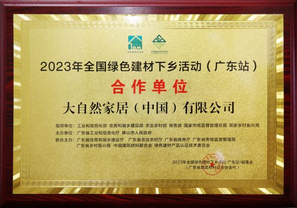 大自然家居成为2023年全国绿色建材下乡活动(广东站)推广企业