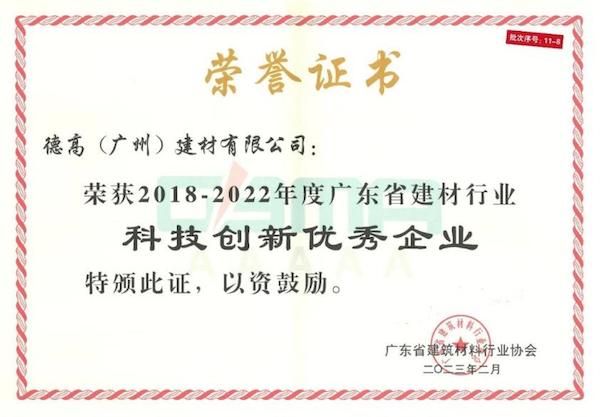 期间,会议还举行了第五届理事会、监事会的就职仪式并现场为会长、副会长、监事长颁发了牌匾,为协会总工程师及新一任秘书长、副秘书长;新一届专家委员会成员颁布聘书,并对2018—2022年度广东建材协会优秀会员单位进行表彰。西卡德高揽获“2018—2022年度广东省建材行业科技创新优秀企业”、 “2018—2022年度广东省建材行业绿色制造优秀企业”两大荣誉奖项。