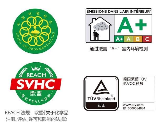 不仅通过“中国环境标志”认证,法国“A+”室内环境检测,还符合欧盟REACH法规且获得德国莱茵TÜV权威认证。绿色环保,安心之选!