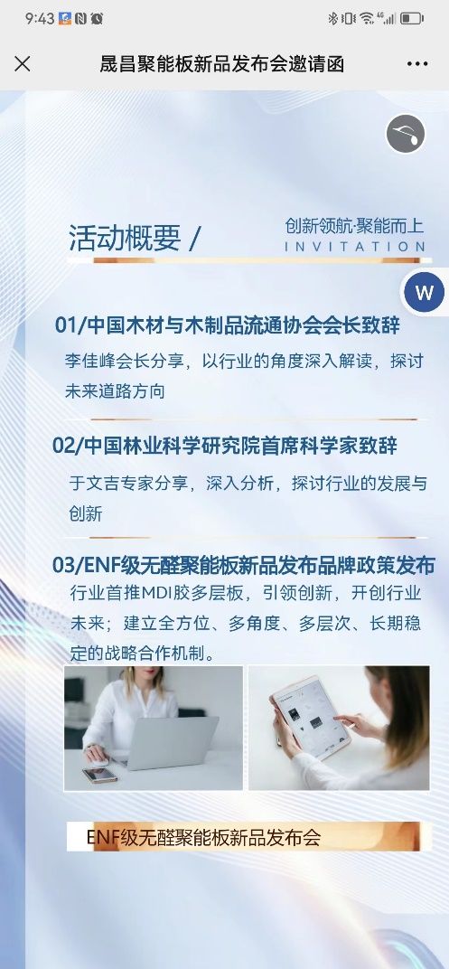 3月30日ENF级无醛聚能板全球首发仪式为了更好的回馈新老客户,晟昌新材料将推出惊喜优惠政策,全方位赋能支持客户,涵盖惊喜价格优惠政策、广告支持补贴、渠道开拓支持、会议支持补贴等,共同做大ENF级无醛聚能板事业。