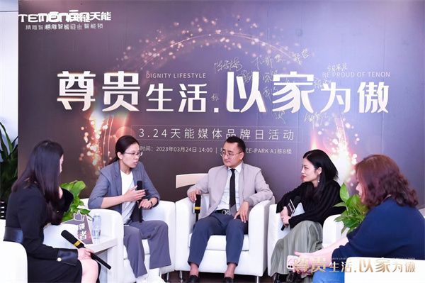 本次324天能媒体品牌日活动,Tenon天能特地邀请到巨量引擎家居负责人陈景清女士、优居华南主编李家燕女士、今日家居主编高单单女士、博骏传媒主编夏木女士,与天品牌总监龙泉先生围绕“2023天能在新的战略定位下,针对智能门锁终端招商发展方向?”进行深度讨论。