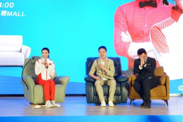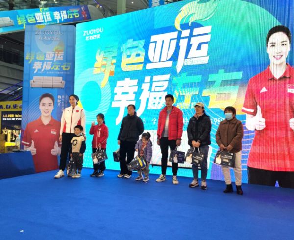 两位冠军现场打卡左右家居杭州亚运会纪念款沙发,与现场粉丝以及消费者零距离讲述自己的冠军故事,并亲身与场内粉丝们进行亲切互动,一起度过了一段美好时光。