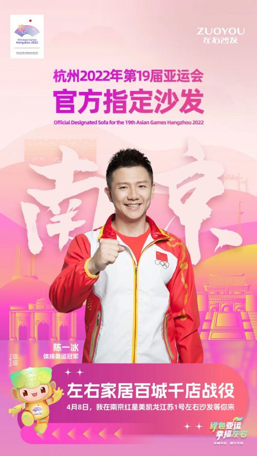 百城千店冠军签售会活动仍在继续,4月8日,奥运冠军陈一冰将现身南京红星美凯龙江苏1号店左右沙发,快来和陈一冰一起打卡左右家居线下实体店,零距离感受世界冠军带来向上、积极、乐观的冠军正能量,亲身实地体验左右家居杭州亚运会纪念款沙发带来的舒适家居体验。