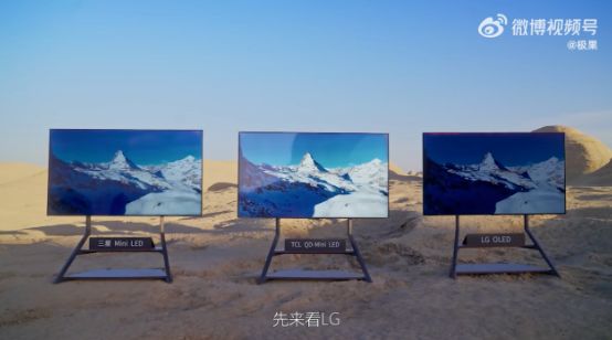 比如前不久极果网做的《三大画质旗舰“火星”巅峰对决》对比测评,选择了LG OLED、三星 Mini LED、TCL QD-Mini LED三款旗舰级电视做全方位对比。不看不知道,在高亮度场景下,LG电视表现一般,画面明显不够亮;三星相对好一些,雪山最亮的部分清晰很多。但是与TCL的那块一比,明显可以感觉到TCL电视无论是在亮度、色彩还原度、立体感都更舒适。