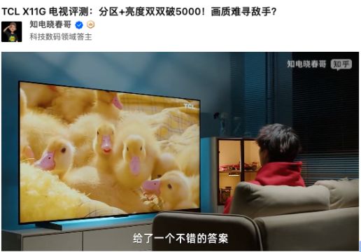 其他专业大V也都对TCL X11G的表现给予了高度的评价,比如@知电春晓哥在测评中提到:画质调教的最理想状态,是真实地还原现实世界,给大家身临其境体验,而TCL X11G给了一个不错的答案。之前还一直有旗舰电视首选日韩品牌的想法,要不是多看了大V的专业评测,真要被老的刻板印象给害了哈。