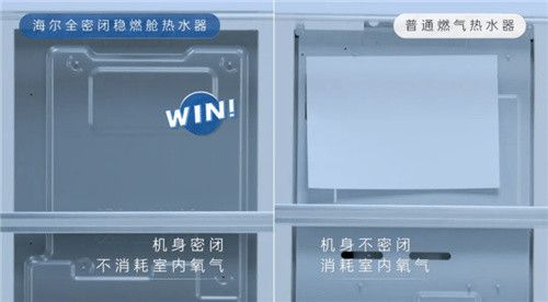 为什么会产生完全不同的实验结果?因为海尔热水器搭载“全密闭稳燃舱”科技,工作时无需消耗室内氧气,所以背部不需要留进风口,自然吸不住A4纸;而普通燃气热水器工作时需要消耗大量室内氧气,需要有进风口源源不断输送空气,因此进风口吸力大,能吸附A4纸。