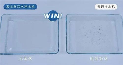 海尔智家视频中,实验人员将海尔鲜活水净水机和普通净水机通水后停机24小时,随后分别用容器接入首杯水,并将两张厨房纸依次放入容器内浸湿并密封。静置72小时后,可以清晰的看到,海尔鲜活水净水机净化水浸泡过的厨房纸依旧洁净,没有菌落;而普通净水机净化水浸泡过的厨房纸出现明显菌落。
