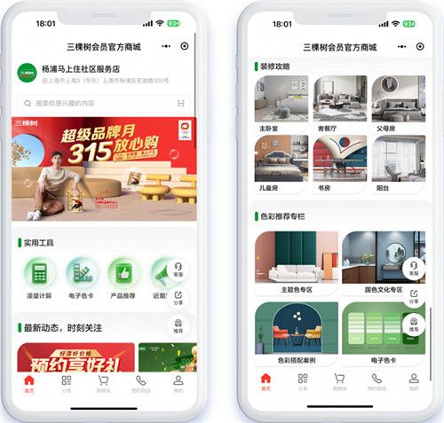 另一方面,涂料的选择和使用都具有较高的专业性,大多数消费者还是会通过经销商或三棵树的健康师傅(油工)等小B端接触产品。所以,三棵树与微盟又通过“油工师傅集结令”等活动,对线下小B端经营者进行集结和促活,将油工师傅引导为三棵树智慧零售小程序商城会员,并以该渠道接受来自C端的订单。