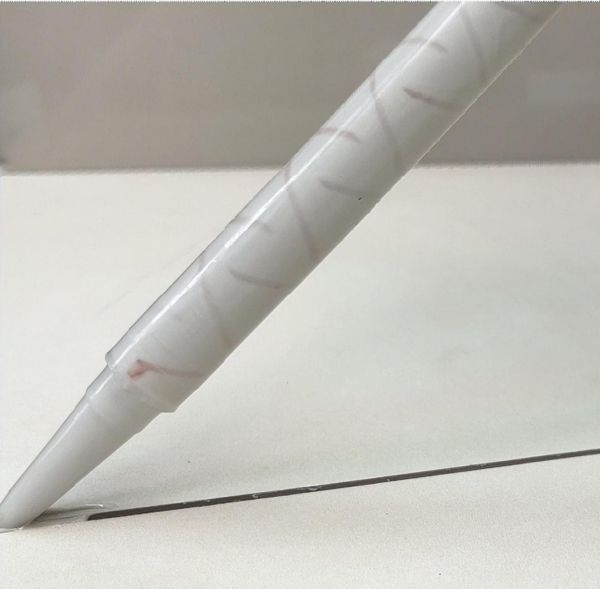 AB两组分混合之后,凝胶时间很短,帝斯固纯系列聚脲美缝剂的操作时间在25-30分钟左右,如果超过这个时间间隔,会出现压胶费劲甚至压不动,并且压完的美缝表面还会出现不平滑等现象。