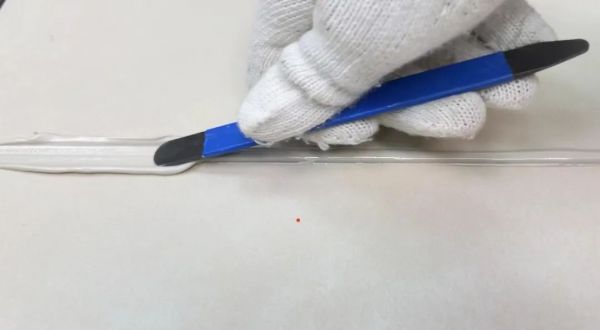 压缝完成后,等待美缝固化,标准常温下4-5小时铲胶;使用清缝铲刀,轻轻铲去美缝两边余料即可。
